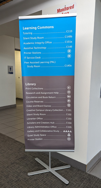 The primary point of observed confusion during the participant journey was in C-Wing on the way to the Library. Even though there is an abundance of signage in this area, with Library Learning Services and Library Learning Commons both being displayed in different places, the ultimate destination was not clear. The Information Technology Support Desk was also misperceived as being the Library, given its geographic proximity, by four participants. One participant remarked on the multiple uses of the word ‘service’ in the names, saying they thought “the service desk is the only service” so it had to be their final destination.